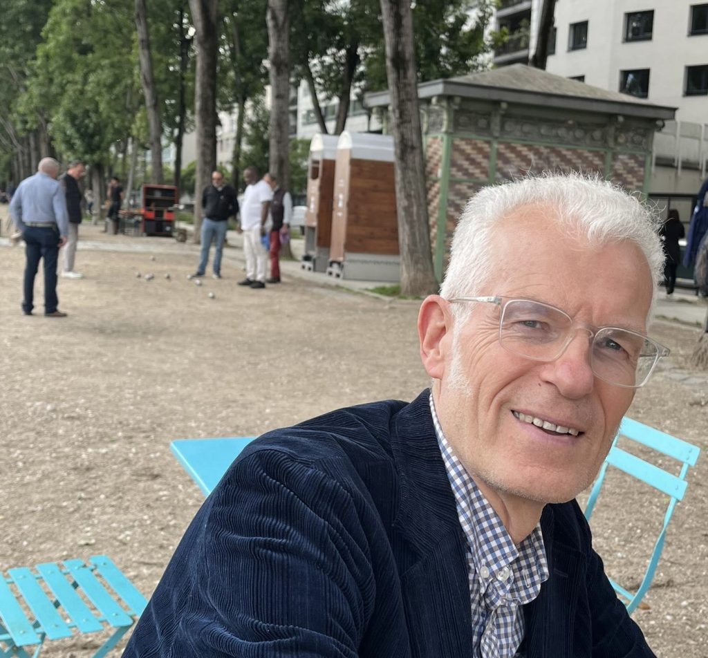 Stephen sent this photo of himself saying “not exactly petanquing but almost. A game is on in the background”