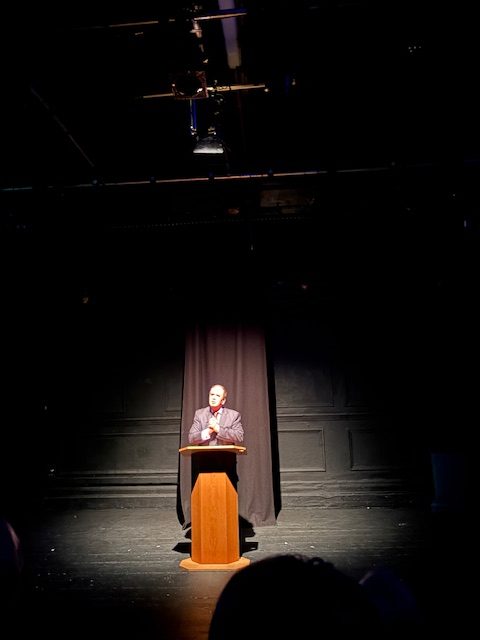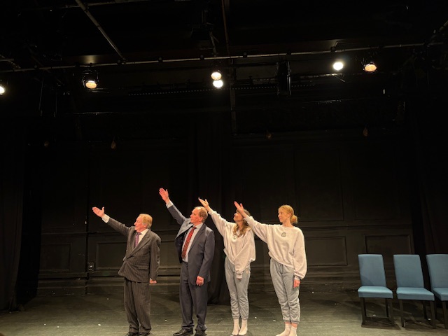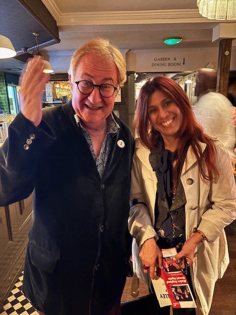 Yours truly with ‘King Charles III’, Clive Greenwood, doing the royal wave. The actor, who has a day job at the Globe, plays the monarch in Francis Beckett’s Make England Great Again