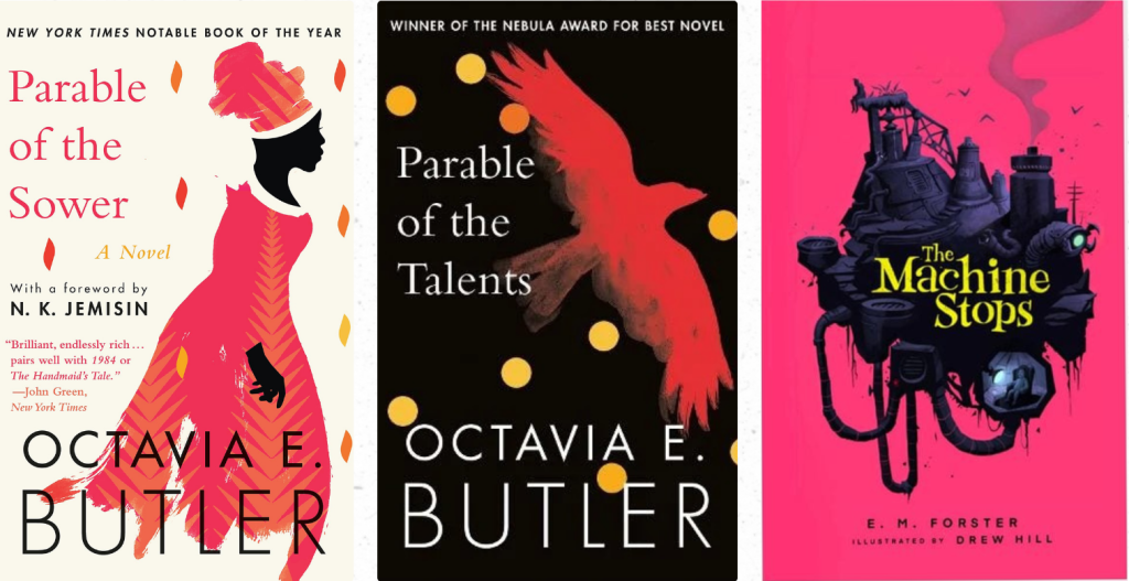 Uncontrollable fires in Los Angeles in 2025 as the world battles climate change. [Parable of the Sower, published 1993]